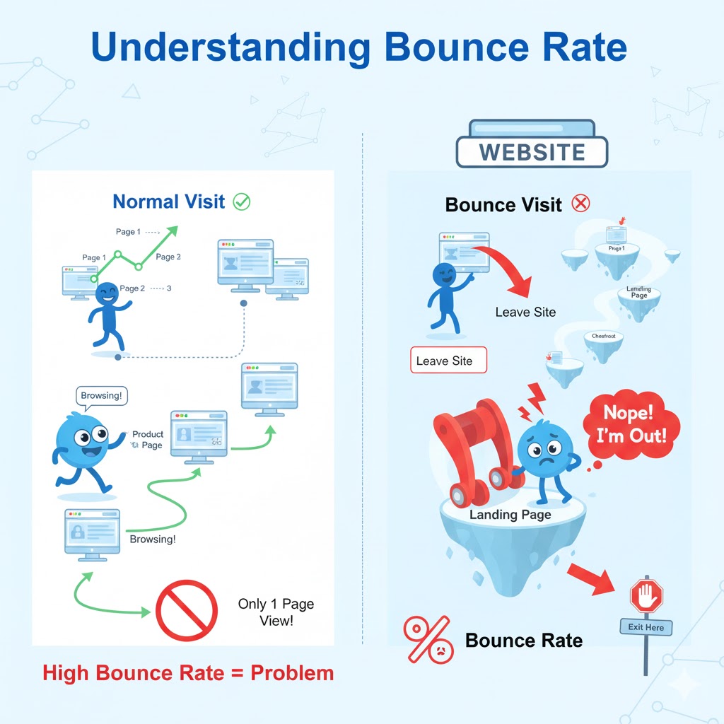 Trong thế giới website, Bounce Rate hay tỷ lệ thoát trang là một thước đo quan trọng để đánh giá hiệu quả của trang web. Nó thể hiện tỷ lệ phần trăm người truy cập vào một trang web và sau đó rời đi mà không xem thêm bất kỳ trang nào khác. Nói cách khác, Bounce Rate cho bạn biết có bao nhiêu người truy cập trang web của bạn và không tìm thấy nội dung họ quan tâm, dẫn đến việc họ nhanh chóng rời đi.