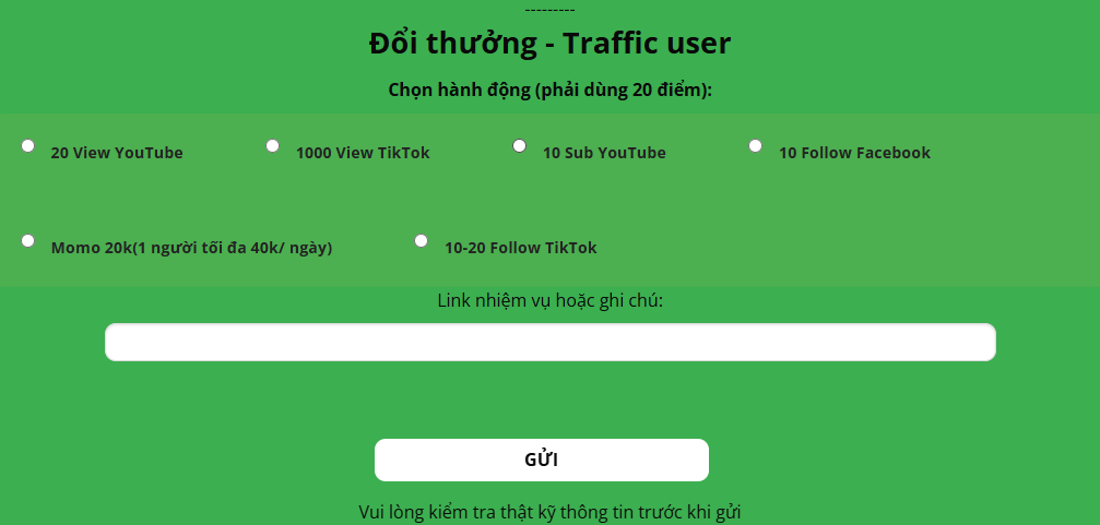 - Truy cập trang đổi thưởng: https://tvdseo.com/tao-nhiem-vu/